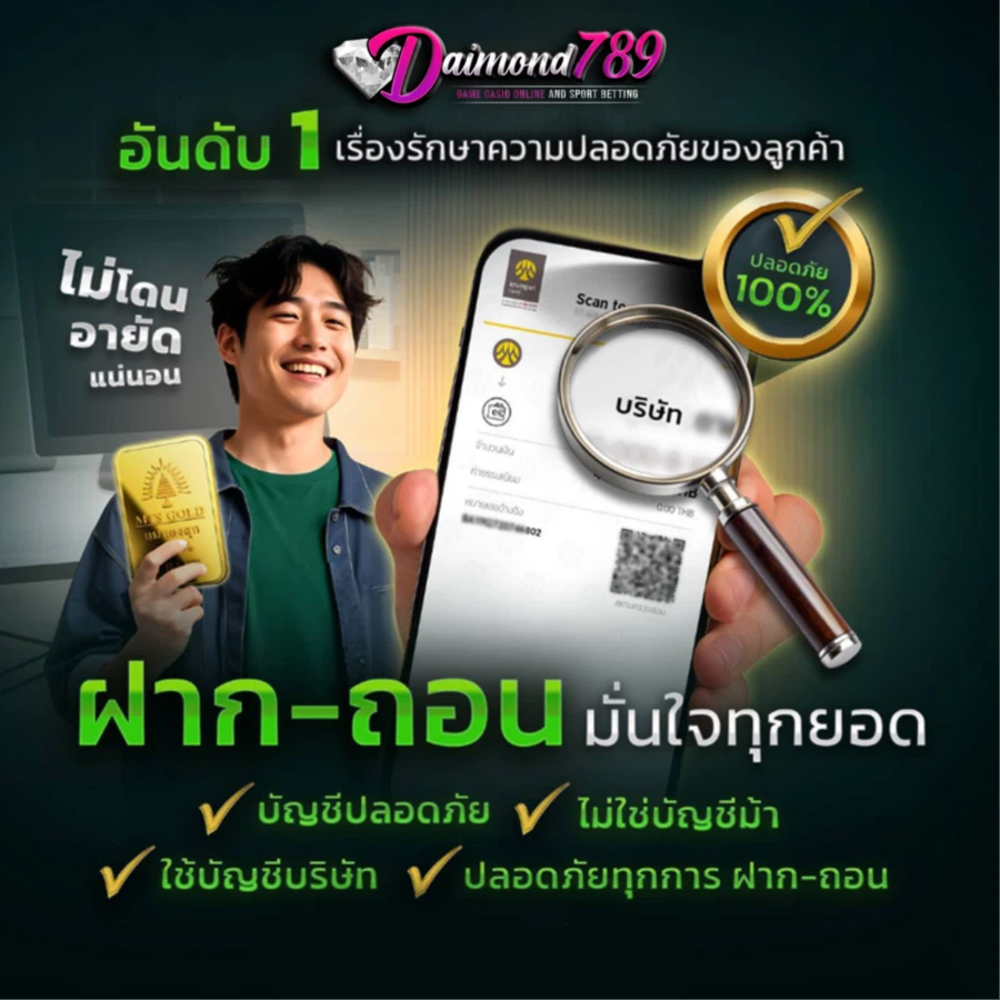 ที่น่าสนใจไปกว่านั้น Diamond789 ยังมีการพัฒนาระบบความปลอดภัยให้ทันสมัยอยู่เสมอ ใช้เทคโนโลยีการเข้ารหัสระดับสูงเพื่อปกป้องข้อมูลและธุรกรรมทางการเงินของสมาชิก นอกจากนี้ยังมีทีมงานคอยให้บริการตลอด 24 ชั่วโมง พร้อมช่วยเหลือและแก้ไขปัญหาที่อาจเกิดขึ้นได้อย่างทันท่วงที